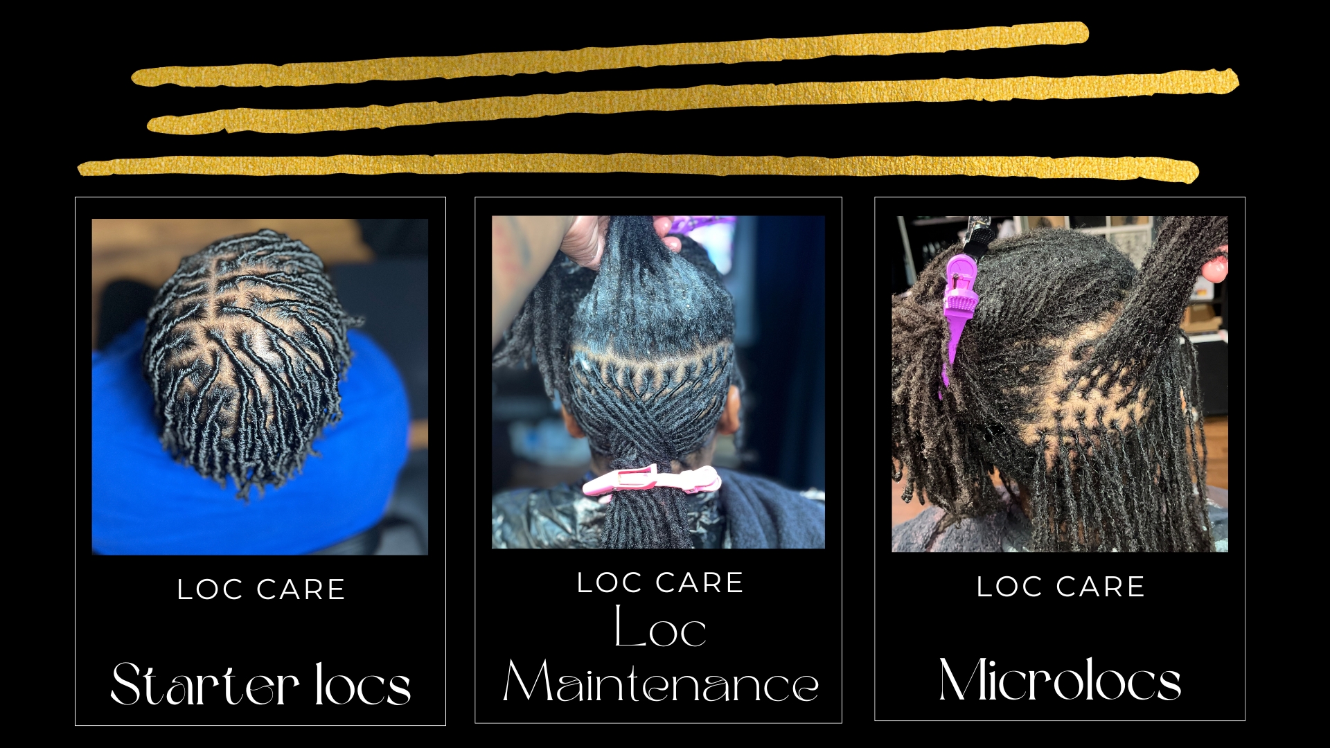 “Wash, condition, style & dry in 2 hours! The styles created are secure and last for weeks. My hair is healthy & shiny. Parts are clean & symmetrical. Her attention to detail is unmatched. I have scalp psoriasis so I make sure to take my medicated shampoo and she takes care of me every time. My flare ups have decreased, and my hair is strong & thriving. It’s refreshing to see someone take pride in their work. Whenever there has been a scheduling issue she communicates with me and we find a solution. She established my loc’s May 2021 and I have no regrets!”